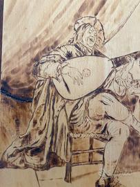 Tavolozza in legno grezzo pirografata a mano con tecnica di bruciatura del legno 26 cm x 23 cm