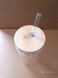 Tazza/Barattolo di vetro da 500ml con coperchio in legno e cannucce