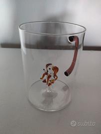 Bellissima tazza/bicchiere in vetro con cagnolino all'interno nuova