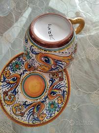 Tazza da colazione in maiolica di Deruta.... interamente fatta e dipinta a mano....pregevole decorazione...misure piattino cm. 17...tazza cm. 13