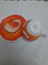 tazza da tè della linea "... al Volo" di Thun, caratterizzata dalla scritta interna e da decori sottosmalto.