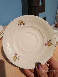 Deliziosa tazza in fine porcellana tedesca. Decorata con rose sia all'interno che all'esterno. Base a onde. Il piattino è stato abbinato, (segnalo che non è identico alla tazza) sempre in porcellana Bavaria Germany. Per gustare un tè o un infuso tornando indietro nel tempo