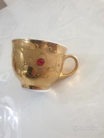 tazza da the bavaria molto bella e rara color oro con pietra rossa ben tenuta