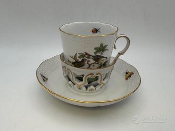 La tazza è alta 8,9 cm e ha un diametro di 7,4 cm, mentre il piattino ha un diametro di 14,7 cm. La tazza è in ottime condizioni, senza scheggiature o crepe.
