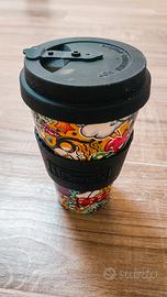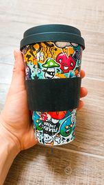 Perfetta per le tue bevande preferite in viaggio, in ufficio o a casa! Ecologica e Sostenibile, presenta una vivace e colorata fantasia graffiti/doodle, per un tocco di stile urbano e allegria. Leggera e maneggevole, ha un comodo coperchio apribile in silicone e una fascia in gomma antiscivolo per una presa sicura che isola dal calore. Adatta sia per bevande calde che fredde. Nuova e in perfette condizioni, pronta per il suo primo utilizzo.