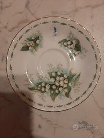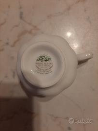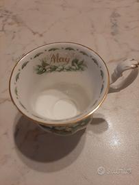 vendesi tazza e piattino da caffè in fine porcellana Royal Albert del 1970 "lily of the valley" mese Maggio (May) mai usata (ancora si intravede l'adesivo La Perle)