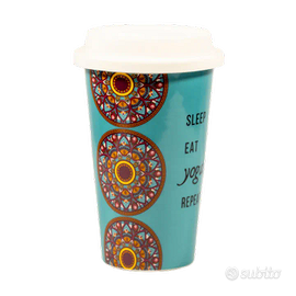 Tazza in ceramica doppio strato con tappo anti goccia in silicone è ideale per chi ama sorseggiare caffè all'americana, tè, tisane, frappè, o qualsiasi bevanda calda o fredda in totale comodità e con un tocco di design.