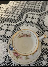 Royal Albert Tazza June Nuova senza cartellino mai usato! -Tazzina diametro 4,5 cm. altezza 4 cm. Piattino diametro 7,5 cm.