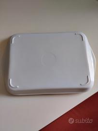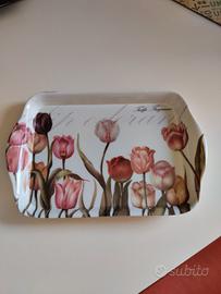 Tazza mug con coperchio in ceramica e mini vassoio rettangolare in melamina in ottime condizioni.