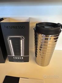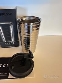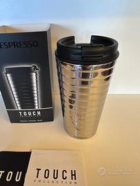 Tazza marca Nespresso modello Travel mug. Tappo in plastica, tazza in acciaio.