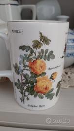 mug in porcellana finemente decorata con rose in raffigurazioni botaniche By The Natural History Museum Collection. Manico e bordo impreziositi da dettagli dorati.