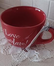 Simpatica tazzotta per una bella cioccolata calda con frustino sciogli grumi per una preparazione perfetta.