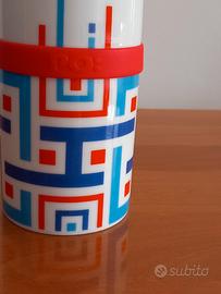 LA FAMOSA TAZZA PO: TAZZA PO: IN PORCELLANA CONTIENE 200 MILLILITRI ADATTA AL MICROONDE DISEGNO GEOMETRIC RING MUG HA LA CARATTERISTICA DEL DOPPIO MURO CON ANELLO ROSSO IN SILICONE • LA CARATTERISTICA DEL COSIDDETTO DOPPIO MURO O DOPPIA PARETE PERMETTE UN ISOLAMENTO TERMICO MANTENENDO LE BEVANDE CALDE PIU' A LUNGO OPPURE FREDDE IMPEDENDO LA FORMAZIONE DELLA CONDENSA • IN PERFETTO STATO MAI USATA. TEMA: BLUE GEOMETRIC RING MUG (14690) CM 13X8 PESO GRAMMI 450 • 1 TAZZA DESIGN: FRANK KERDIL PARI AL NUOVO 🔵⚪️🔴