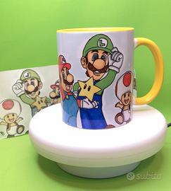 Tazza disegnata interamente a mano in ceramica da 350 ml. Con interno e manico giallo. Colori e disegni permanenti adatti per lavastoviglie e microonde
