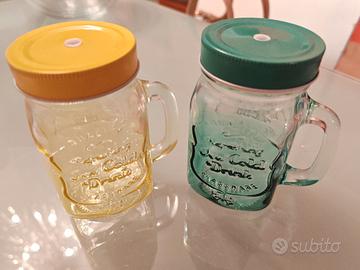 Vendo 2 tazze colorate per tisana/tè mai usate. Formato barattolo con tappo e cannuccia abbinata. Perfette condizioni, manca solo la scatola.