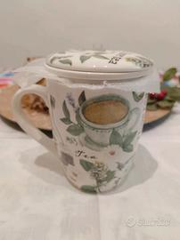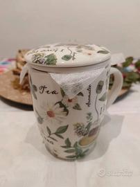 Completa di infusore in ceramica forato e coperchio coordinato, ideale per tè sfuso e tisane.