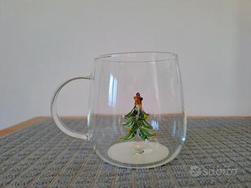 Tazza in vetro trasparente con decorazione natalizia a forma di alberello .