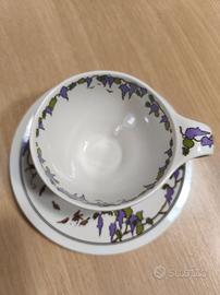tazze con piattino Villeroy & Boch, coppia, design 1900 in porcellana Vitro, mai usate, intatte 1a scelta, senza imperfezioni. Disegno donna con tralci di vite. misure tazza altezza cm 6 e diametro cm 8. piattino diametro cm 15.