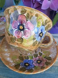 2 bellissime tazze da tè con piattino Deruta La Giara Realizzate e dipinte a mano In perfette condizioni, come nuove