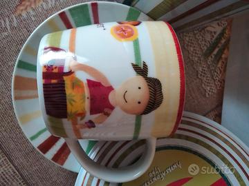breakfast set in ceramica: due tazze, due piattini, confezione in latta - mai utilizzato -