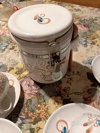 5 tazze da tè con piattino e contenitore per il tè in porcellana