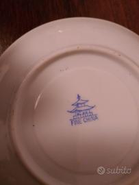 Servizio da tè vintage realizzate in porcellana a guscio d' uovo, composto da 4 tazze e teiera. Litofania di geisha sul fondo.