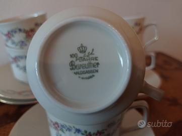 Sei tazze da te vintage con piattino in fine porcellana marchiate Bareuther
