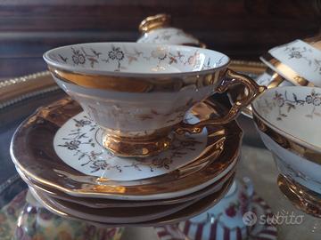 6 tazze con piattino da the..bianche e Oro..Bavaria ritiro zona v.della Pisana 44Euro w.app.3392368753