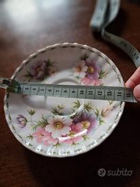 Set di tazze da tè e piattini in porcellana fine inglese della serie "Flower of the Month" (Fiore del mese) di Royal Albert.