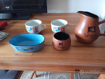 vendo due tazze, una caraffa, una zuccheriera, e porta pane,
