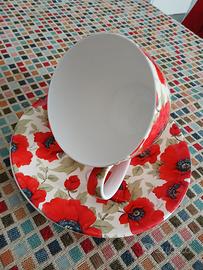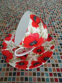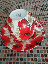 Tazza colazione, stile inglese, decoro con papaveri rossi, colori vivaci, mis. diametro 12 cm x 9,5 cm altezza
