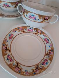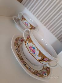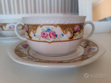 set due tazze da minestra con piattini in fine ceramica inglese decorata.