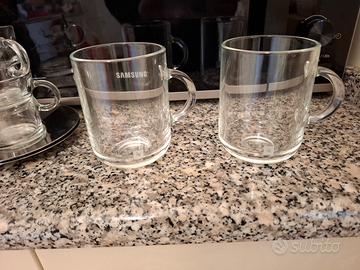 tazze originali Nespresso nuove mai usate, due tazzine vetro trasparente caffè lungo con piattino in inox, due tazze vetro mug come nuove mai usate