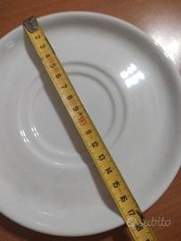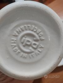 due tazze uguali,con piattino. porcellana cipa,made in Italy, penso anni 60-70. tenute benissimo, forse sono dipinte a mano. le tazze sono grandi,diametro di cm 10.