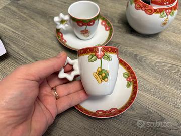 Elegante set da caffè natalizio THUN originale, in porcellana decorata, composto da: