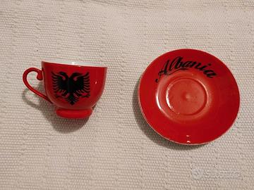 Tazzina da caffè con aquila nera a due teste, simbolo della bandiera dell'Albania.