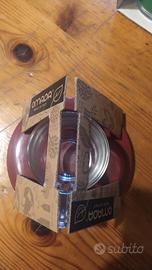 vendo tazzina caffe in vetro con piattino in plastica colore marrone ,marca omada