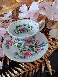 Tazzina da tè con piattino in porcellana Covent Garden, collezione "Flower of the month " mese di Agosto.