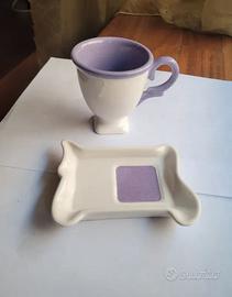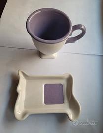 Tazzina con piattino rettangolare Colore bianco e viola Nuova
