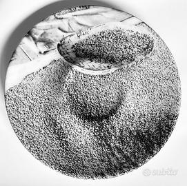 Salgado "In principio" Tazzina Illy Collection 2004 dedicata all' India, firmata e numerata alla base, in condizioni perfette, nuova, mai usata e in confezione originale altrettanto in condizioni perfette (le foto sono parte integrante della descrizione) anche con il relativo barattolo di caffè personalizzato come la tazzina (ancora pieno e sigillato ma ovviamente non più commestibile essendo la data di consumazione scaduta) e soprattutto contenente anche il libretto illustrativo della serie.