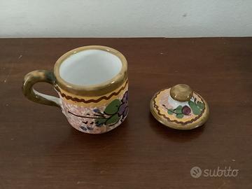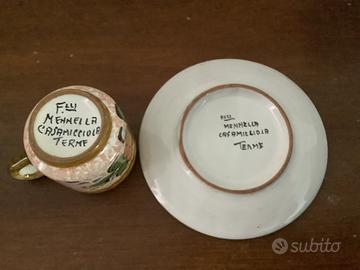 Vendo tazzina da caffè con coperchio e piattino in ceramica, comprata a Ischia tanti anni fa, ma non utilizzata per cui è come nuova.