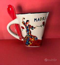 Tazzina souvenir Madrid. Dotata di suo cucchiaino. Nuova con cartellino.