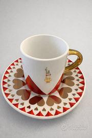 Quattro tazzine, il cuore delle carte della Bialetti nuove con scatola porcellana e oro Zecchino. Solo consegna a mano.