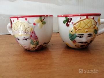 4 tazzine Firmate ceramica di Caltagirone... In omaggio vassoio in peltro(tipo argento)