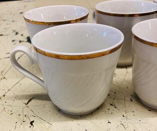Servizio di 6 tazzine con piattini in porcellana Bavarese con bordo dorato.