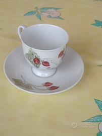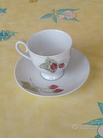 Set 6 tazzine da caffè con piattino in porcellana Seltmann Weiden Bavaria W. Germany, integre, dipinte a mano, decoro fragoline