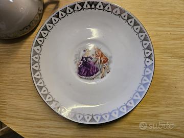 3 Tazzine da caffè Vintage in porcellana BAVARIA , con zuccheriera , in ottimo stato, disegno tipicodi vita Bavarese del 1800