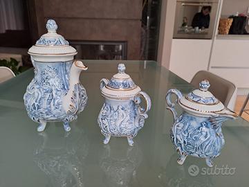 Servizio da caffè di 6 tazzine con zuccheriera, caffettiera e lattiera in ceramica di di Capodimonte degli anni '80. Mai utilizzato. Disponibile il certificato di origine.