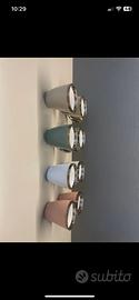 8 tazzine da caffè color pastello; in omaggio tazzina da caffè scritta Love