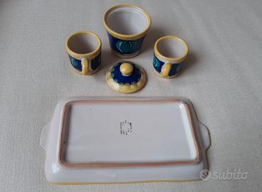 Servizietto da caffè per due, marcato "CERAMICA ARTISTICA SORRENTINA DIPINTA A MANO, vintage anni '90.